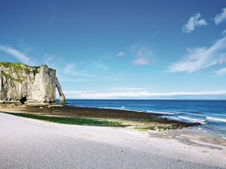 La Côte d‘Albâtre qui s’étend sur 120 kilomètres le long du littoral de la Manche est caractérisée par des falaises de craie d’une hauteur de jusqu’à 100 mètres. Les falaises de la station balnéaire d’Étretat sont particulièrement impressionnantes.